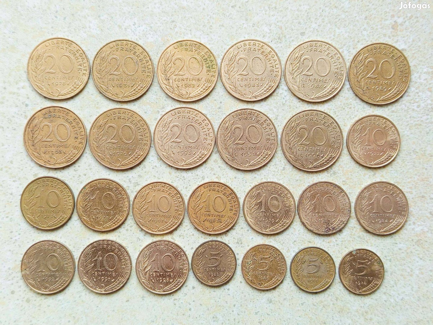 Franciaország 26 db Különböző Érme 5 10 20 Centimes 1963-1998