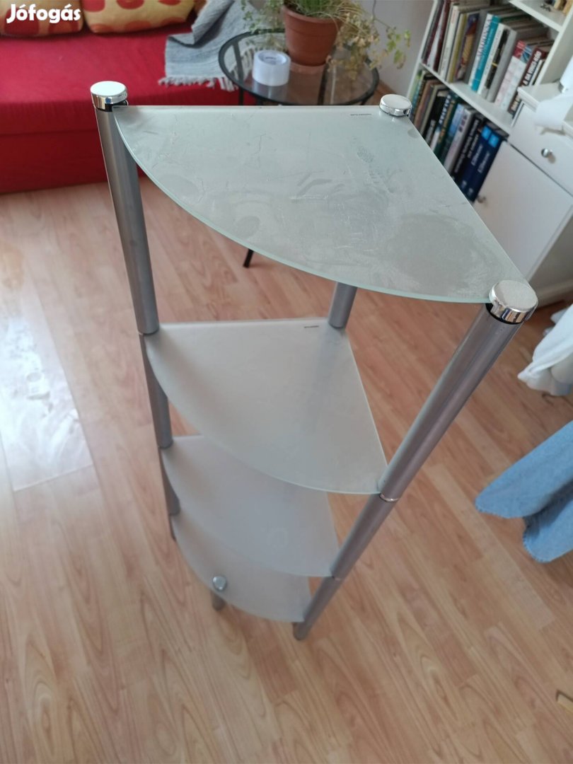 Kb 110 cm magas,27x27 széles savmart üveglap polcok,fém váz