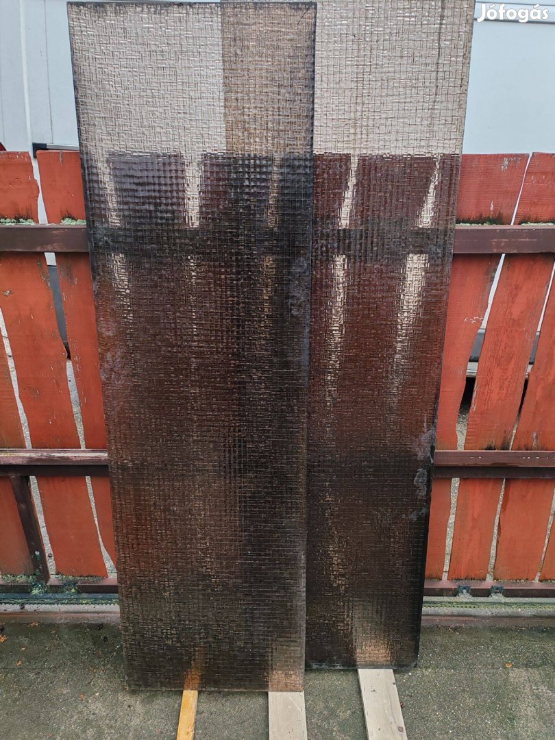 Eladó a képeken látható barnás árnyalatú füstszínű dróthállós üveg.A mérete 50cm szer 170cm összesen 10 tábla van belőlle 3 ban találtam repedést az összes ára 20000 ft.