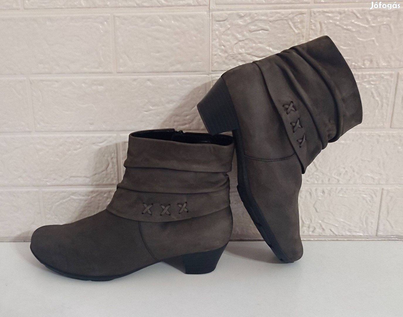 Keveset használt, szép állapotú, mogyoróbarna színű Gabor csizma mikroszálas béléssel, vajpuha bőr, varrásmentes felsőrésszel, csúszásgátlós talppal, kényelmes sarokmagassággal (3 cm). Belső oldalán cipzáros, így könnyű fel-és levenni.