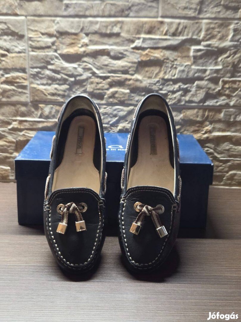 37,5-as Geox fekete női bőr cipő, mokaszin, a képek szerinti állapotban.
