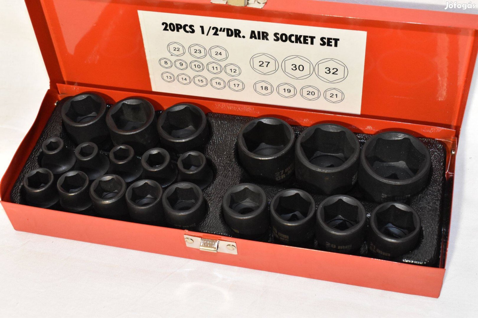 Eladó teljesen új 20 darabos dugókulcs készlet. Akár géppel, légkulccsal is használható. 1/2", méretek a képeken. (8-32)