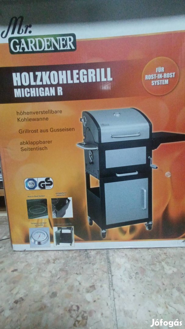 Bontatlan MR.Gardener grillsütő, állítható magasságú széntálca,öntöttvas rostély,méretei:m97,sz114,m55,32 kg, alsó tároló szekrényes,rozsdamentes burkolatok,hőfokmérő,BBQ,és grill lehetőség.Bolti ára 79900.