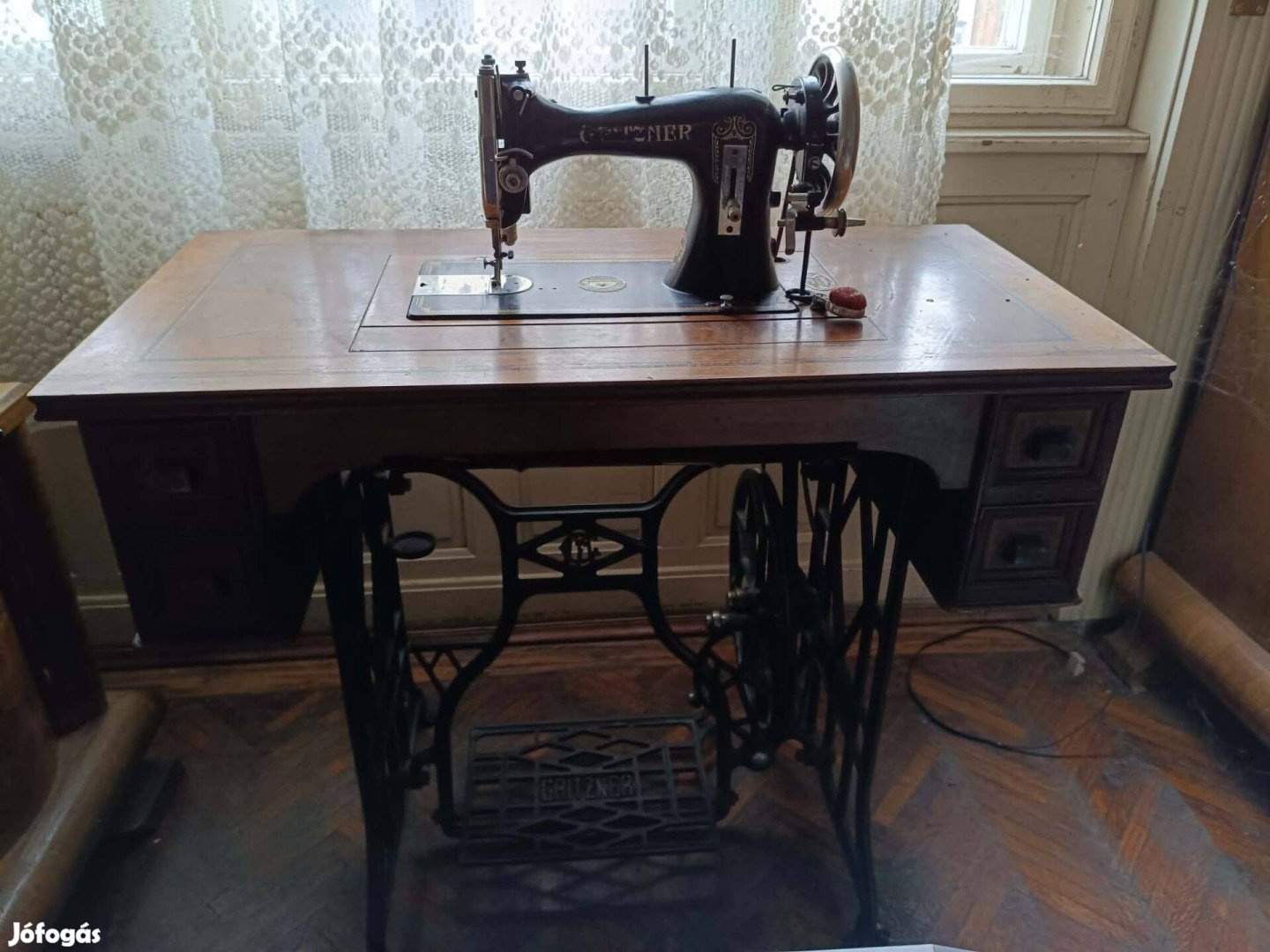 Gritzner varrógép asztalával, működőképes állapotban a 1900-as évek legelejéről.