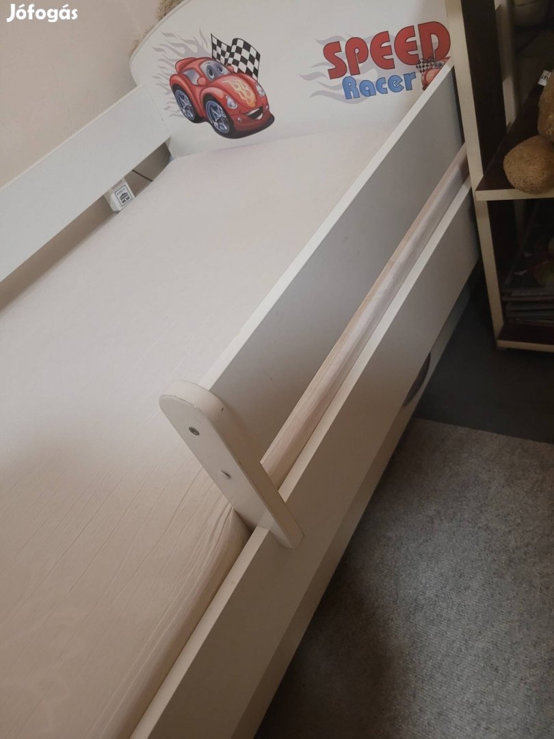 Keveset használt, hamar átnőtt leesésgátlós gyerekágy eladó matraccal együtt.