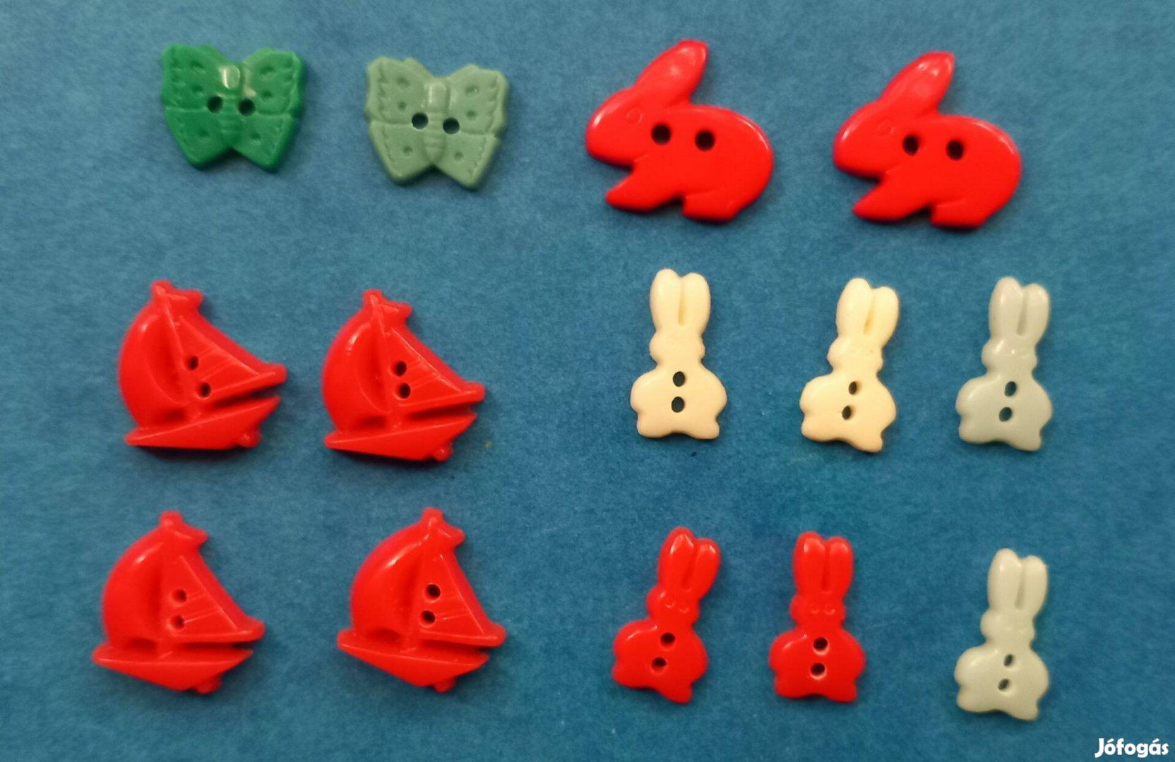 Gyerekruhára való díszgombok - nyuszis, lepkés hajós, 14 db, új