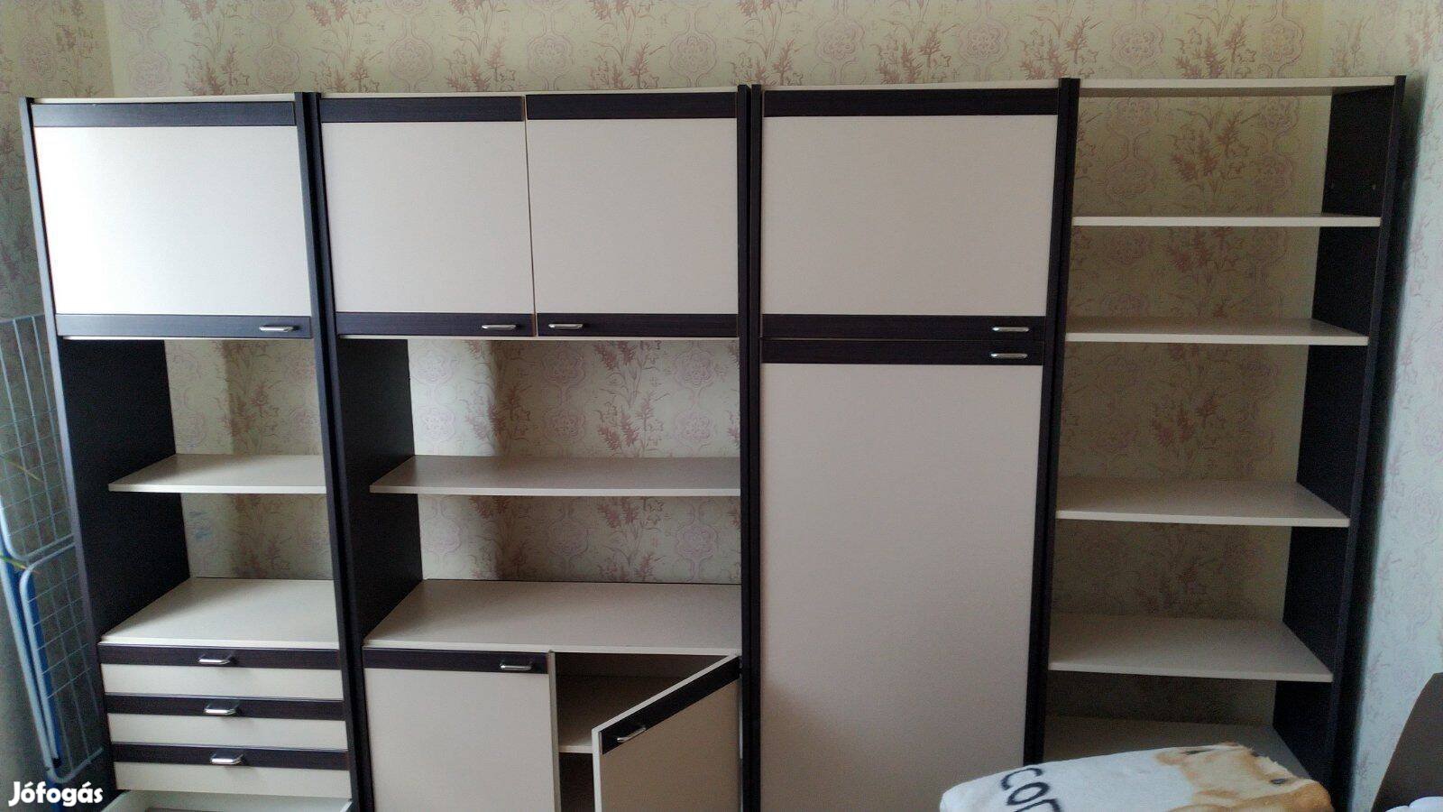 Négy elemes gyerekszobai bútor polcokkal, akasztós szekrénnyel, fiókokkal,