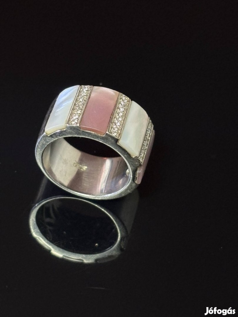 Eladó egy gyönyörű, hihetetlen mutatós, rendkívül látványos, tökéletesen kidolgozott, masszív-tömör ezüst gyűrű, gyöngyház és cirkónia kövekkel ékesítve, tökéletes foglalatban.