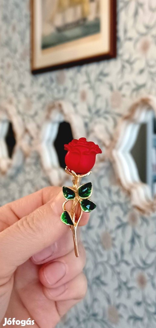Zománcozott fém rózsa kitűző.