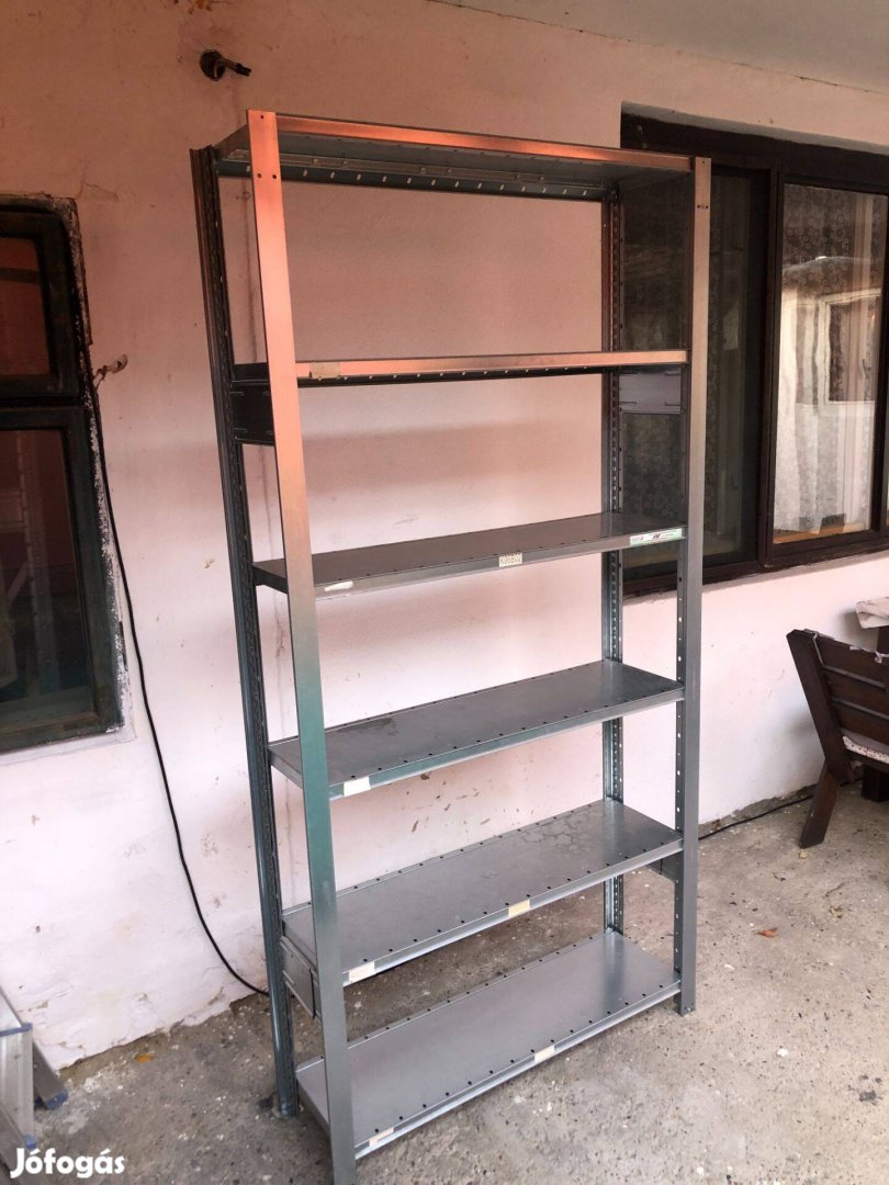 Jó állapotú használt csavarmentes polc 6 db polclappal.