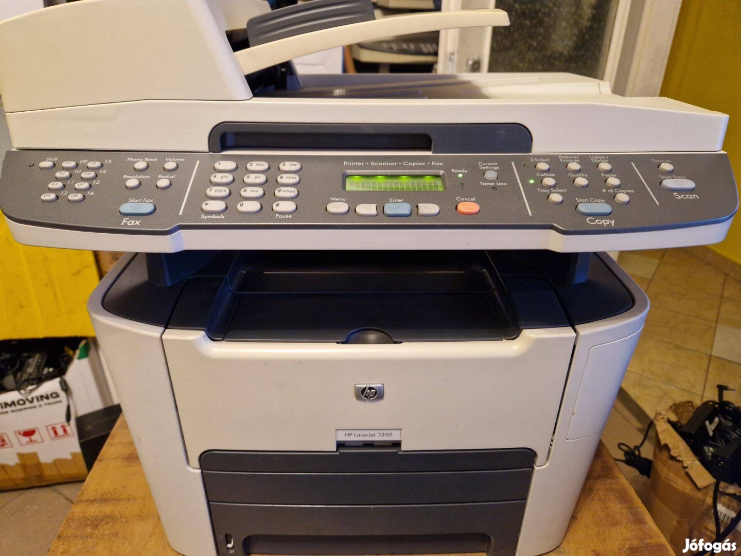Eladó HP LJ 3390 hálózatos Dadf mono lézer nyomtató - másoló - szkenner. Automatikus kétoldalas nyomtatás (duplex), automatikus kétoldalas szkennelés-másolás (Dadf), hálózatos és USB portok.