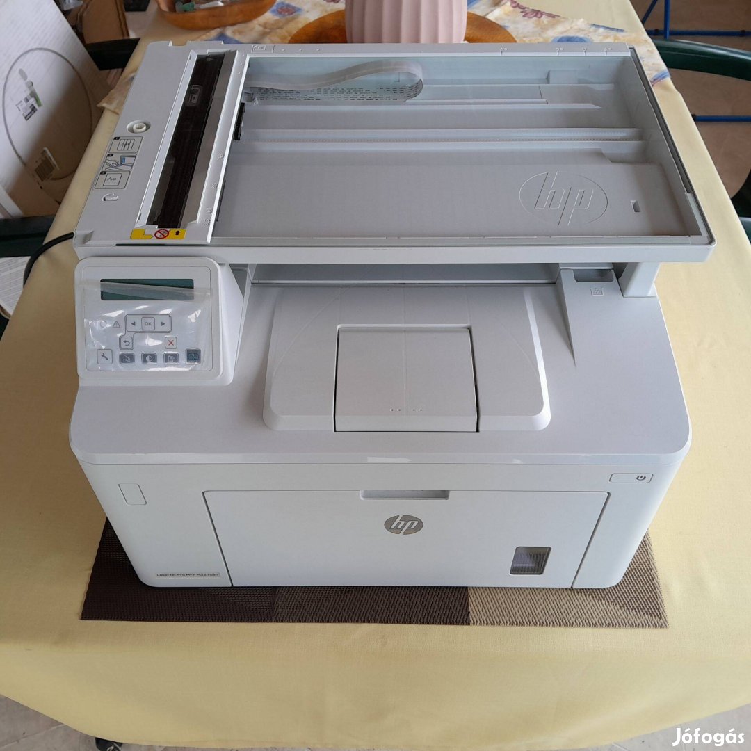 Eladó a képeken látható HP Laserjet Pro MFP M227sdn típusú lézernyomtató. A scanner teteje hiányzik, a szalagkábel szakadt.