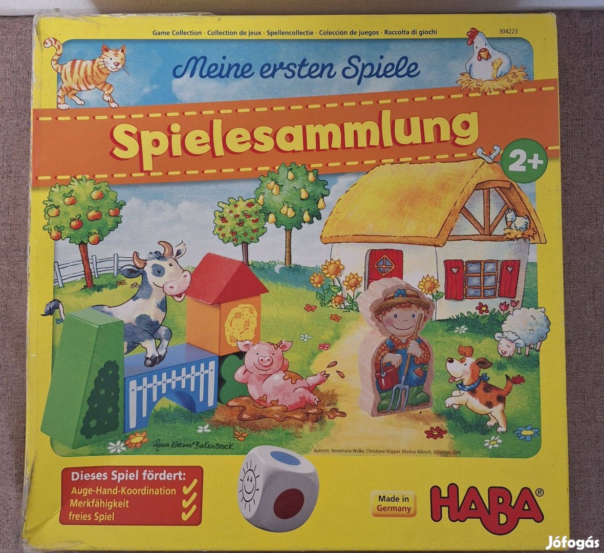 Hiánytalan, a doboza viseltes,de maga a játék jó állapotú,nyomtatott magyar nyelvű játékszabállyal. 2 éves kortól, 1-3 játékos részére.10 különböző játékban tanulják meg a gyerekek színeket és formákat hozzárendelni. A memóriajátékok fejlesztik a memóriakészségeket, a kockadobás és a halmozás pedig elősegíti a kéz-szem koordinációt. A gyerekek szabadon is játszhatnak a játékalkatrészekkel, és elmerülhetnek a tanya színes, vidám világában!