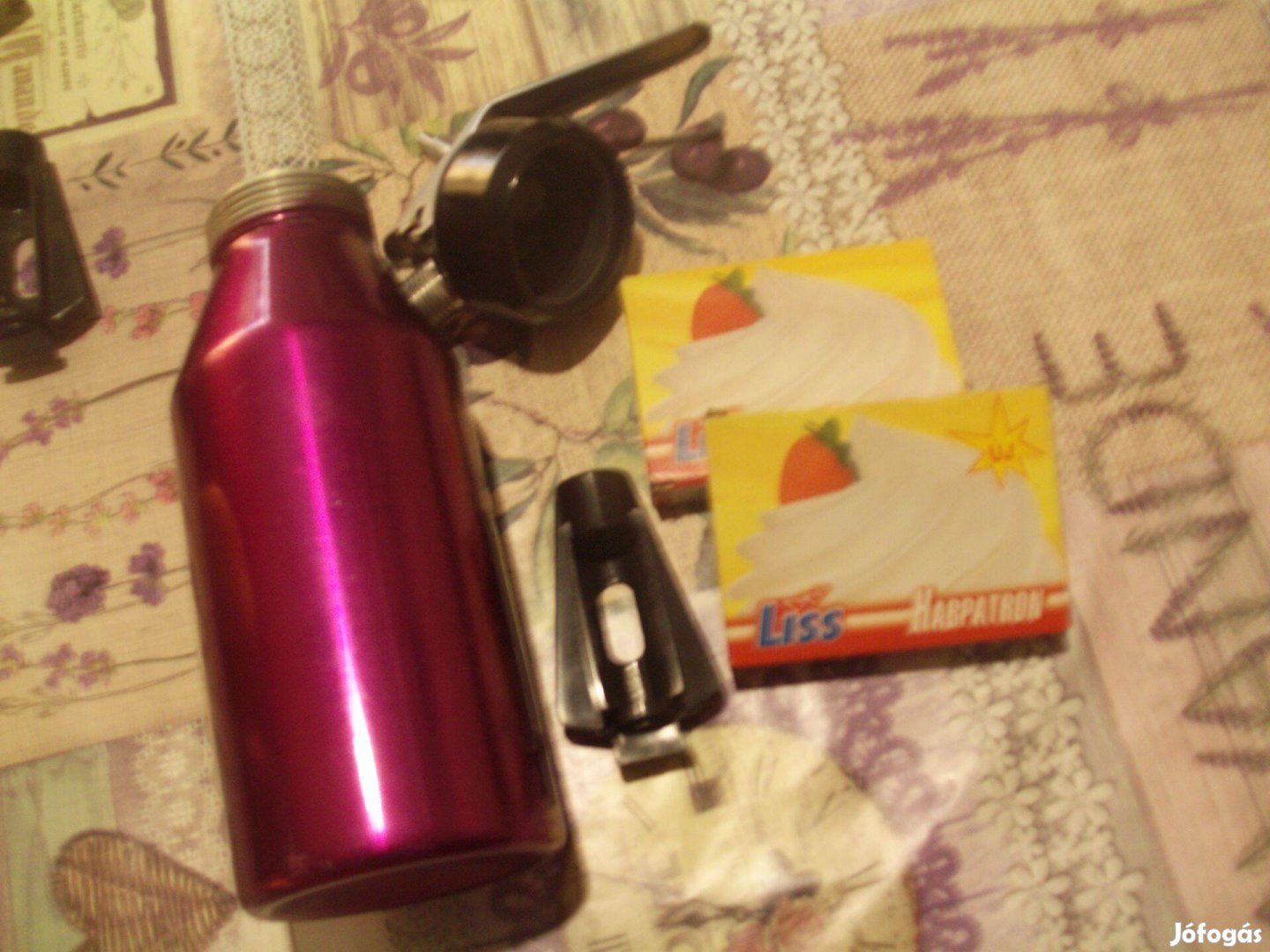Újszerű állapotban keveset használt retro habszifon, hozzávaló 2 doboz habpatron, továbbá egyéb apró új alkatrész is (szimering, szúrótüske).