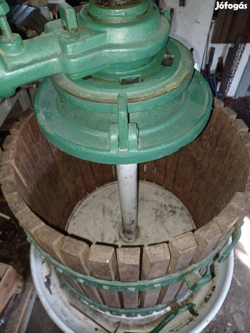 Házi bor készítéséhez, maunuális szőlőprés jó állapotban eladó, mérete kb. 30 literes.