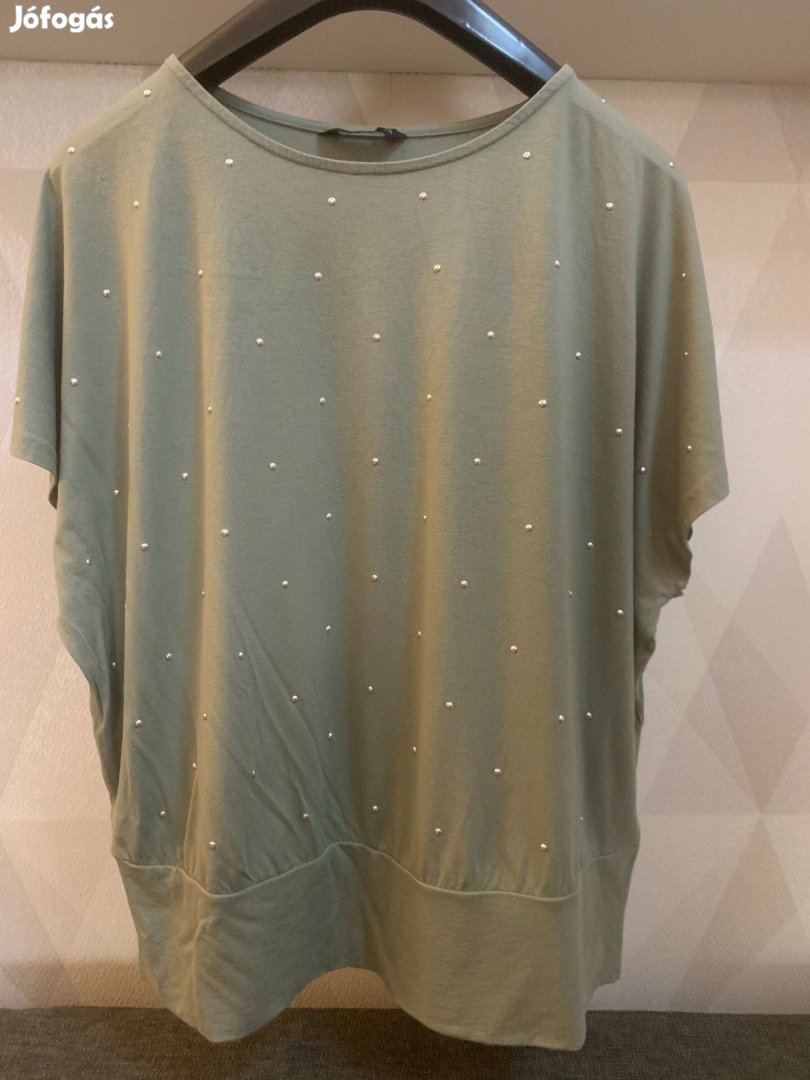 Halvány zöld, fém gyöngyös denevér szabású póló 50-es F&F