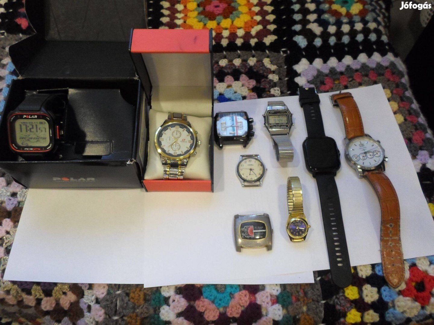 Használt karóra csomag pakk 9db hibás Slava Japona Geneva Polar