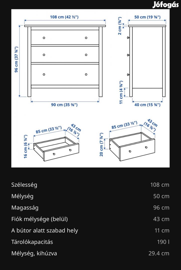 Ikea Hemnes 3 fiókos szekrény kifogástalan állapotban eladó.