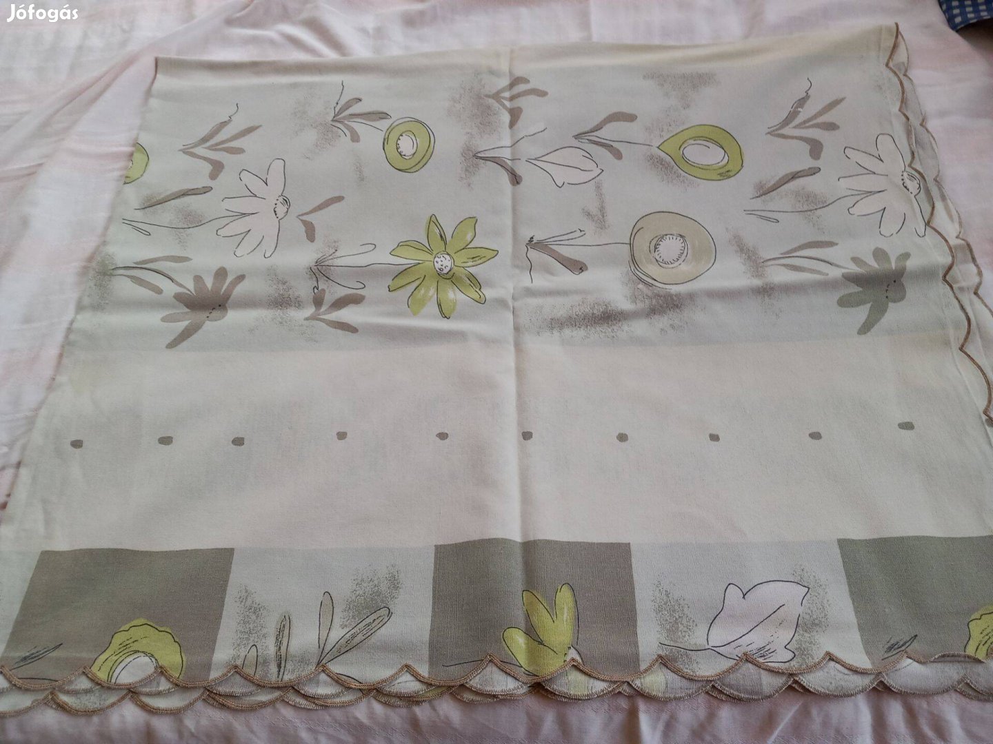 Hibátlan asztalterítő vászon hímzett széllel 120x140cm