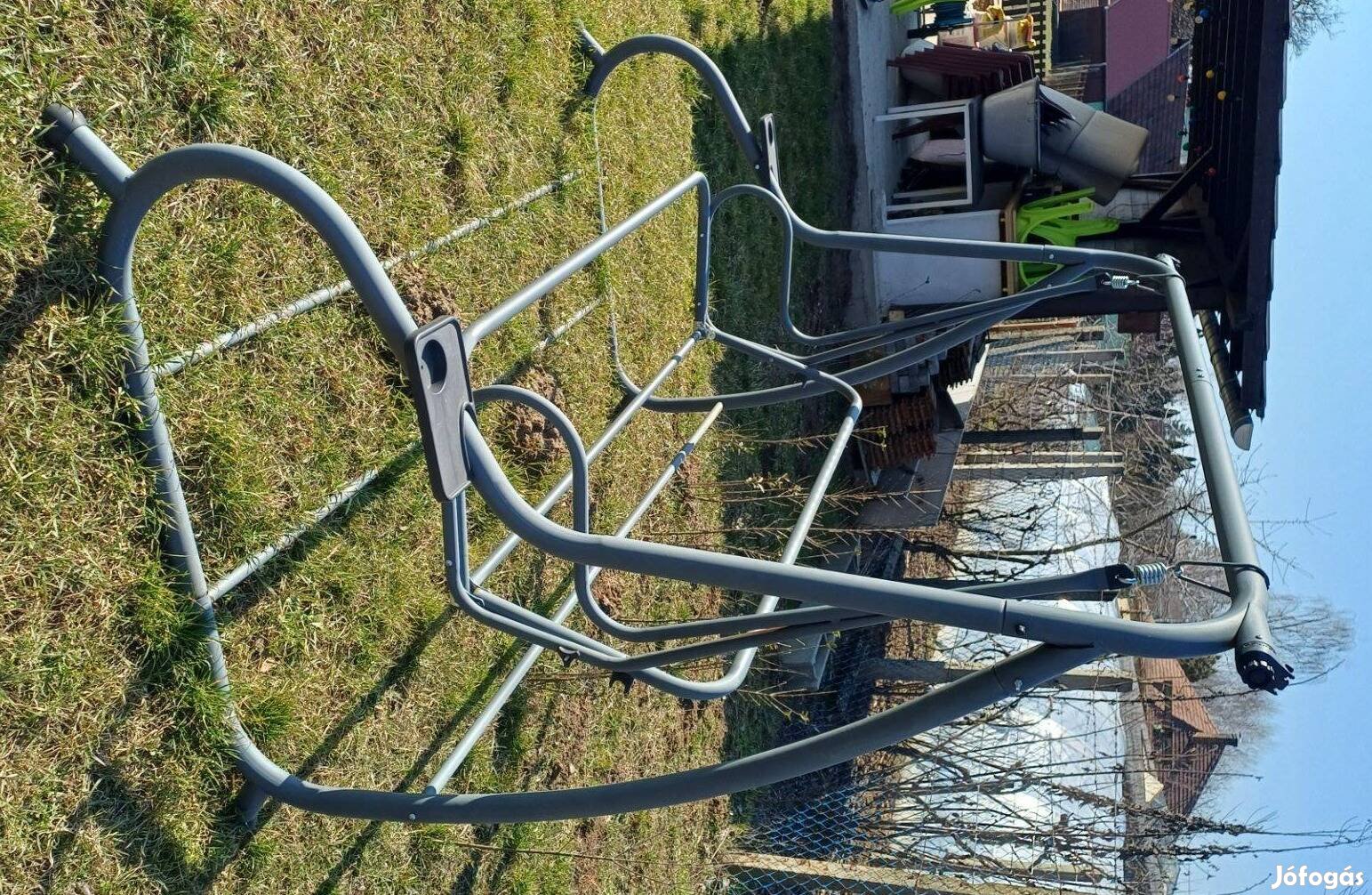 Elátkozott hintaágy váz eladó! Vihar feldöntötte és letört a tetejét tartó műanyag elem. Ekkor még azt terveztem megjavítom. Utána ellopták a matracot belőle. Majd a gyerekek a matrac nélkül ugráltak rajta, a szalagok is elszakadtak. Szóval csak a fém váz van meg, de az teljesen épp.