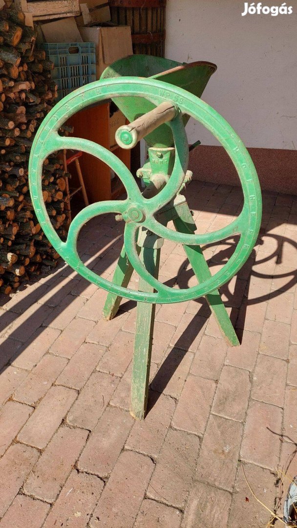 Kézi meghajtású terménydaráló. Állítható szemcseméret, működőképes állapotban. Eredeti festés, Hofherr-Schrantz-Clayton-Shuttleworth.