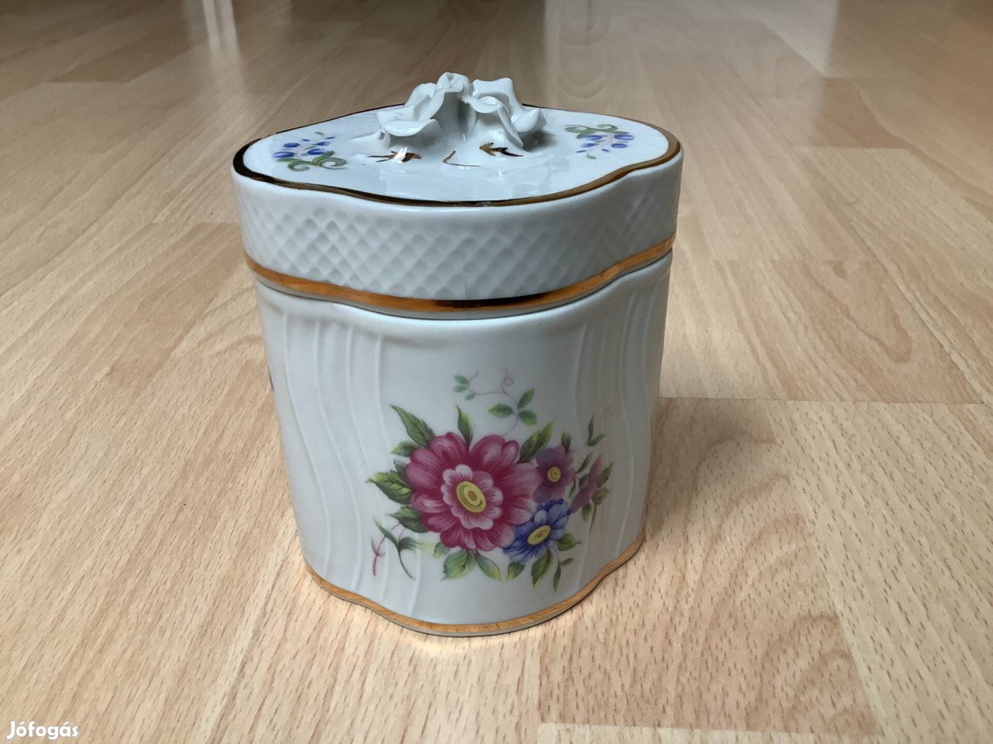 Hollóházi cukortartó, bonbonier, rózsa-díszítéssel.