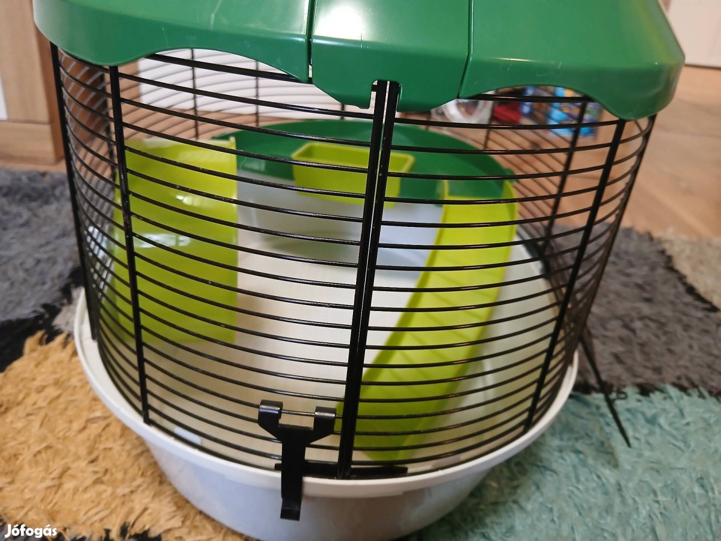 Eladó egy 50X35X30-as méretű hörcsög ketrec, etető tálal és itatoval. Az utolsó képen lévő pöcök hiányzik a másik oldalról (utolsó előtti kép.)