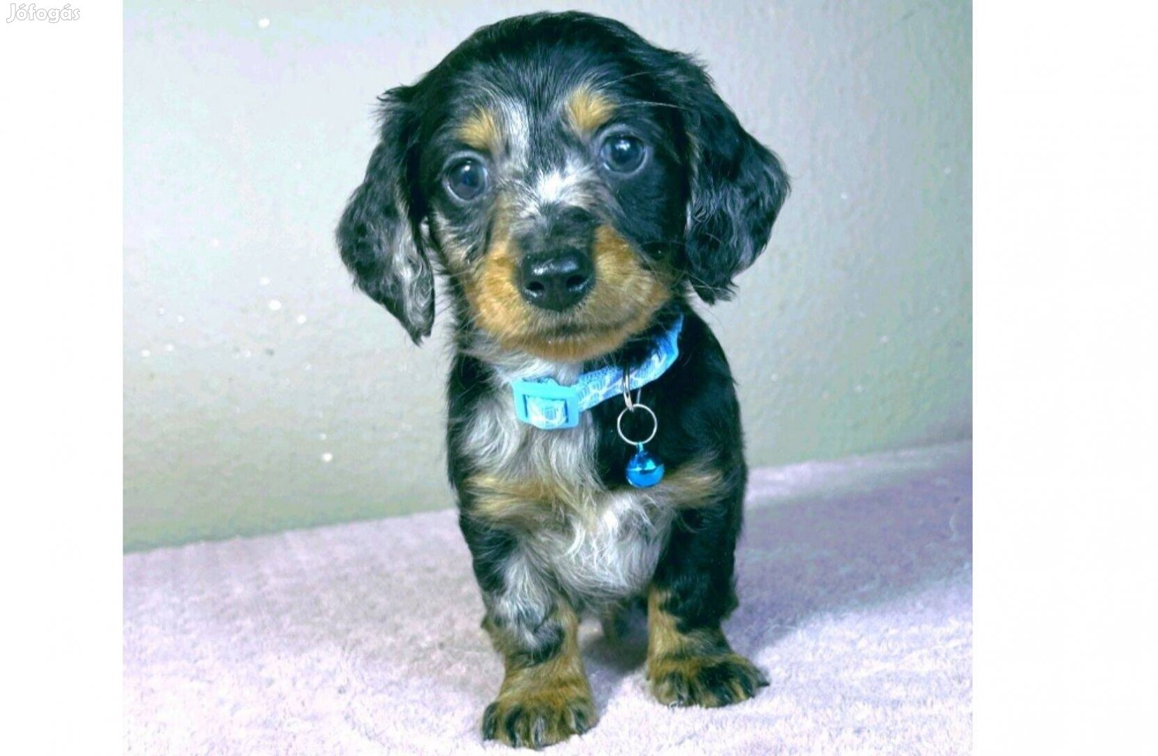 Harlekin hosszú szőrű törpe tacskó fiú kutyus keresi otthonát. Jelenleg 2 hónapos a kutyus .Törzskönyves a kutyus. Állandó orvosi vizsgálat alatt nevelkedett a kutyus .A kutyus rendelkezik chipel, minden oltással. Vizsgálati lappal. Szív, ortopádiai, fül, szem, fogak vizsgálata.Komoly Érdeklődök jelentkezését várom telefonon. Harlekin Miniature dachshund male with long hair looking for new home. I have lot of references all over the world. Please contact with me phone