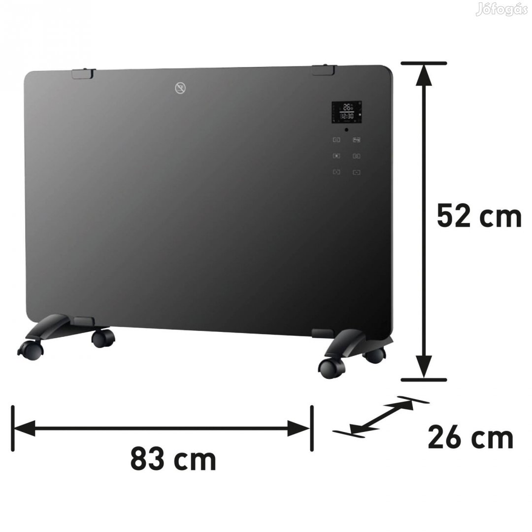 A lapos kialakításnak köszönhetően a fűtőberendezés helytakarékosan használható. Az üvegpaneles hősugárzó falra szerelhető vagy egyszerűen felállítható. Működtetése tetszés szerint az elektromos fűtőkészülék érintőpados kezelőpaneljével vagy kényelmesen, távirányítóval történik. A LED-kijelzőn látható a kiválasztott beállítás.