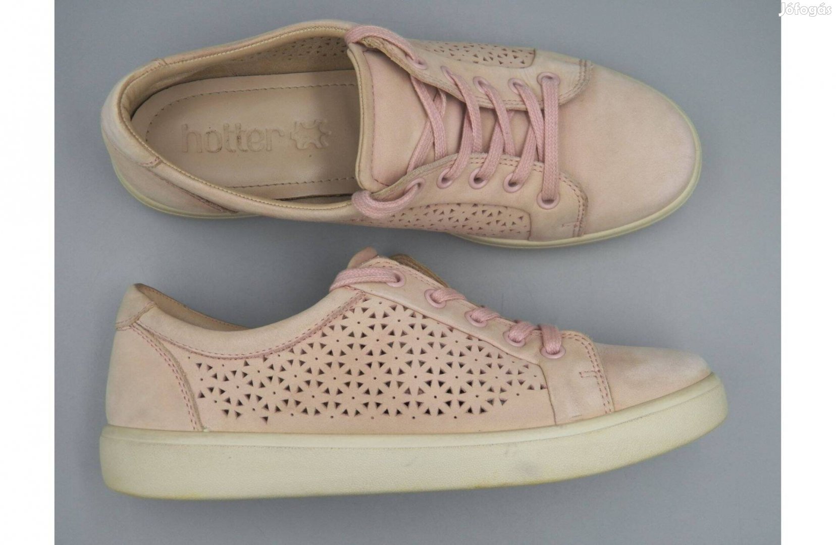 Keveset használt, szép állapotú Hotter nubuk bőr félcipő. Oldalán lyukacsos fazonú, belül kivehető bőr talpbetéttel. Fáradt rózsaszín színű.