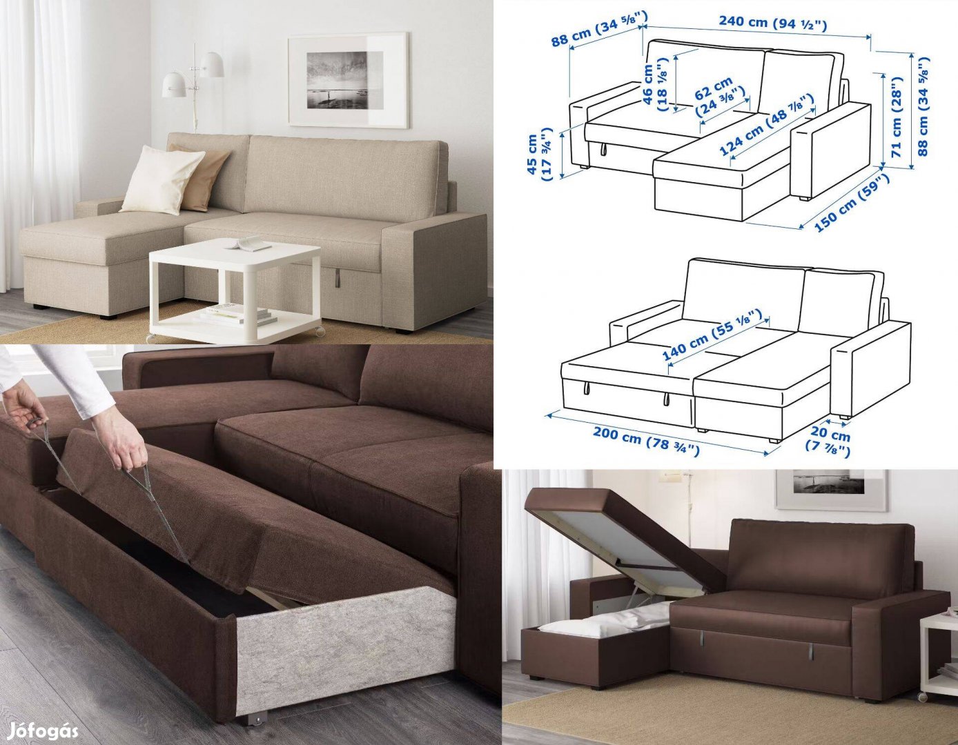 IKEA Vilasund L alakú kanapé-ágy új huzattal ülőgarnitúra