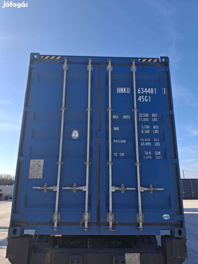 Eladó a képeken látható ISO 40'HC (290cm magas) 2024-es évjáratú újszerű raktárkonténer. A konténer teljesen beázásmentes, ép szerkezetű, jól zárható darab.