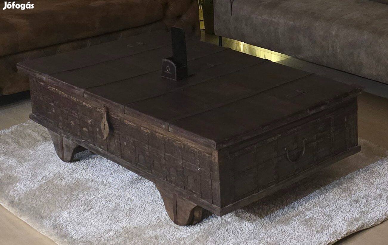 Eladó egyedi kerekes koktélasztal tömör fából. Hatalmas tároló rekesszel.