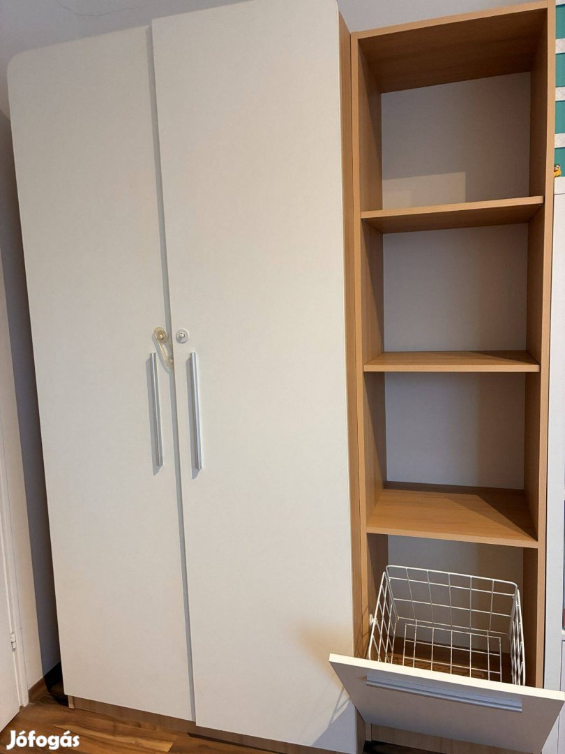 Gyerekszekrények eladók, az akasztós-polcos szekrény 90 cm széles, 50 cm mély és 184 cm magas. A polcos szekrény 45 cm széles, 40 cm mély, 184 cm magas, aljában egy ajtóra akasztható tároló van, pl. plüss játékok számára. Mindkét szekrény barna színű korpusszal és fehér ajtókkal szerelt. Az akasztós szekrény szétszedett állapotban van a polcos egyben. Egyben 30.000 Ft-ért elvihető Érdről.
