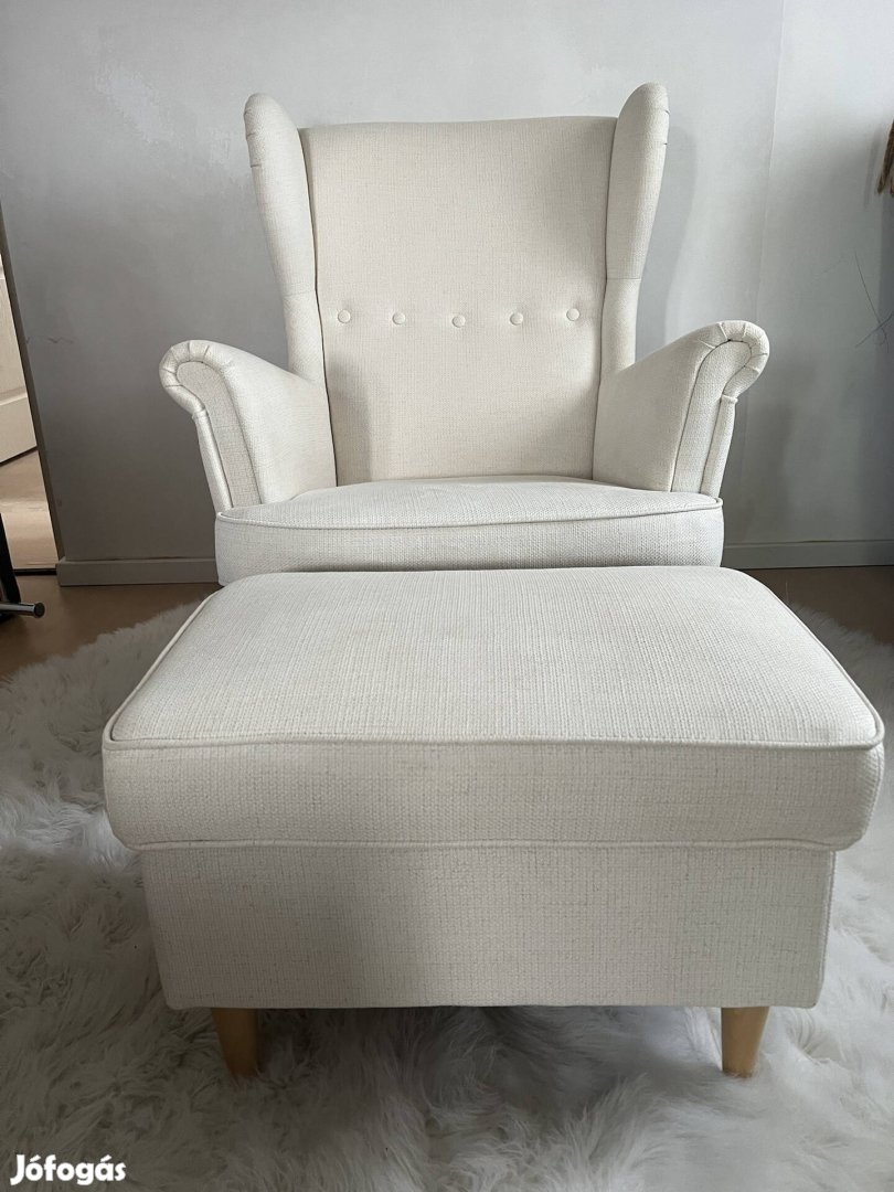 Ikea Strandmon fotel lábtartóval krém fehér színben szép állapotban.