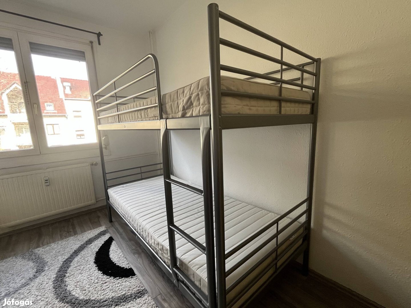 Eladó kiváló állapotú (talán ha 1-2x használt) Ikea Svarta emeletes ágy, létrával, biztonsági kerettel. Jelenleg össze van szerelve, szétszerelésben tudok segíteni, szállításban sajnos nem. Az ágy Vácról vihető. Matrac: 90x200cm. Matracok nélkül is vihető, csak a keret : 45.000 Ft. (Nem dohányzó lakásból.)