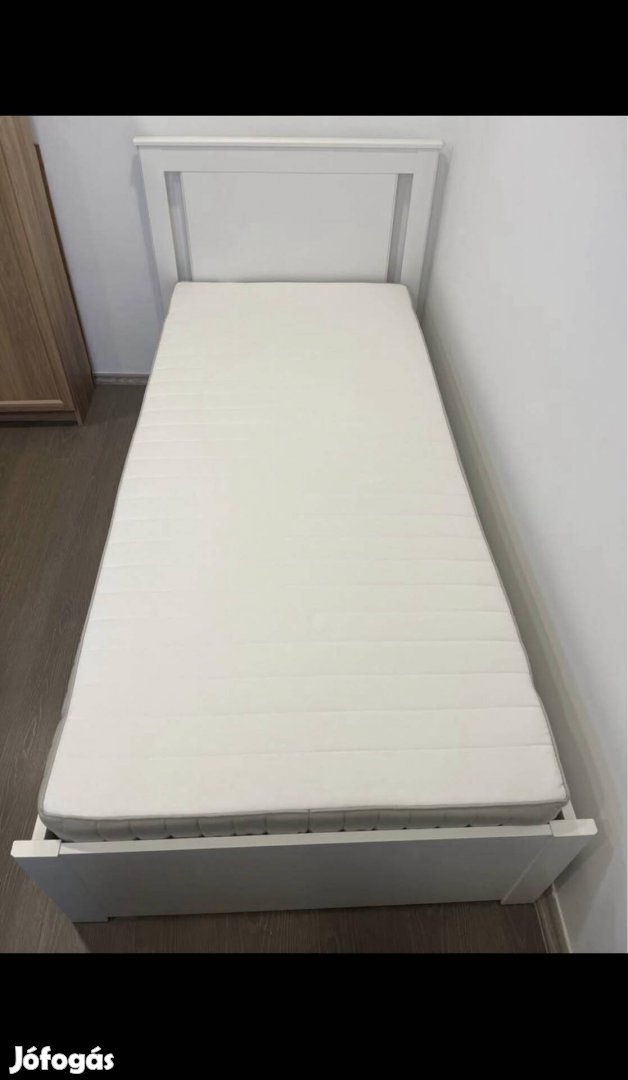 Ikeás egyszemélyes songesand ágy és a méretében passzoló 90x200-as hafslo matrac (rugós kemény).