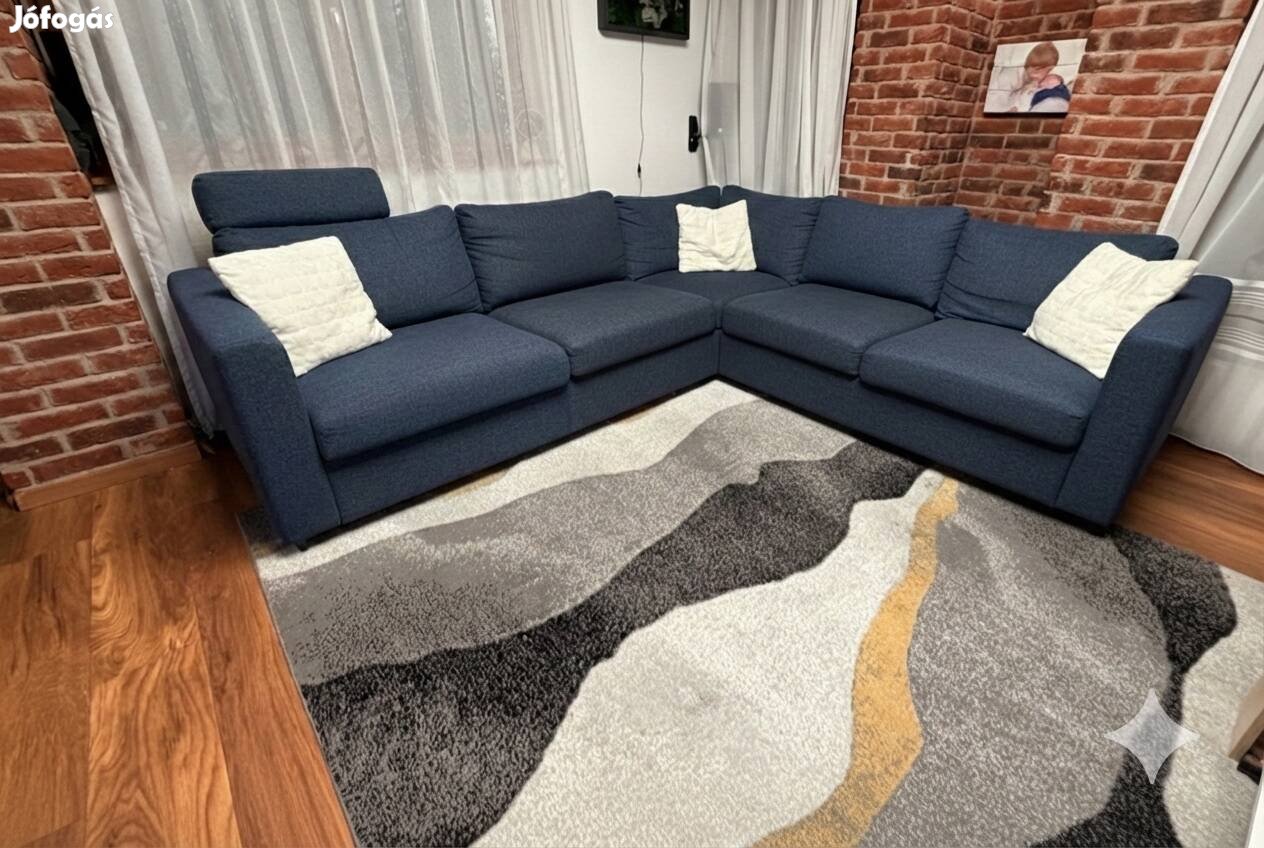 Eladó lett egy ikea vimle sarok kanapé, ami teljes értékű ággyá alakítható. Van hozzá egy szürke és egy kék huzat garnítúra is valamit egy fejtámla.