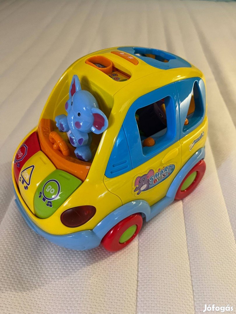 Interaktív, zenélő, beszélő, mozgó, formabedobó autó