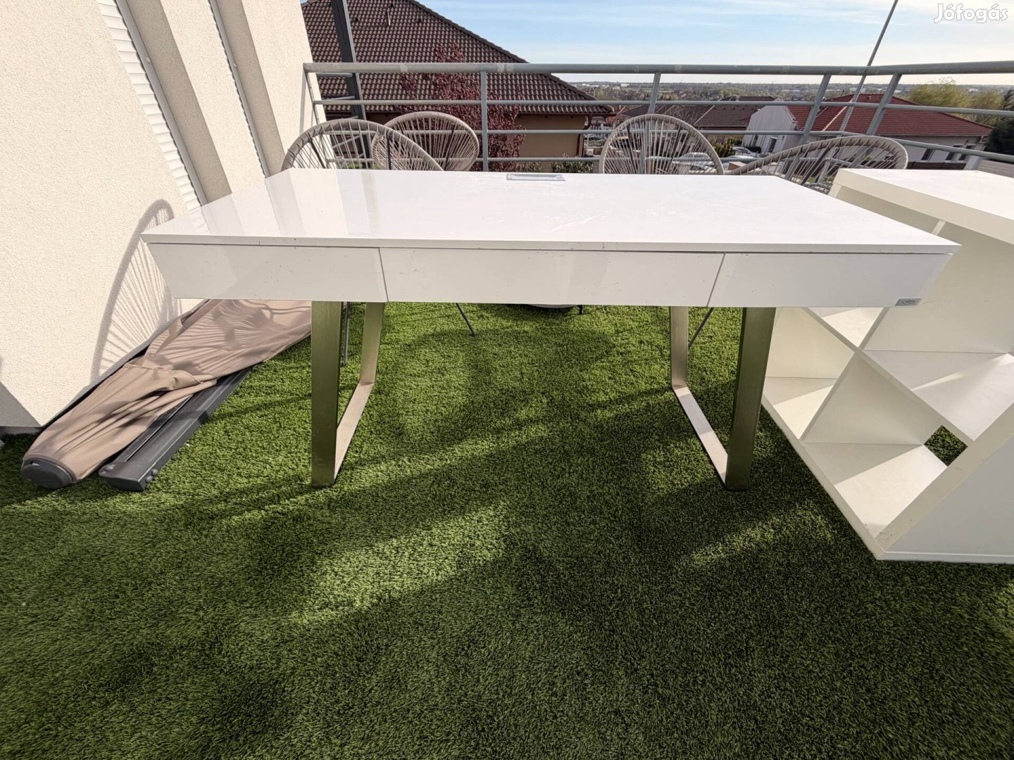 Minőségi íróasztal, magasfényű fehér színben. Alig használt , szép állapot, 3 fiókkal.