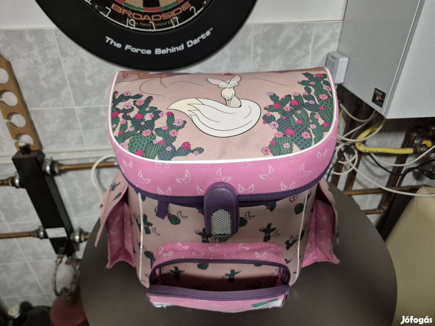 Jó állapotú iskola táska eladó hozzá tartozó toltartó val és torna zsákkal.
