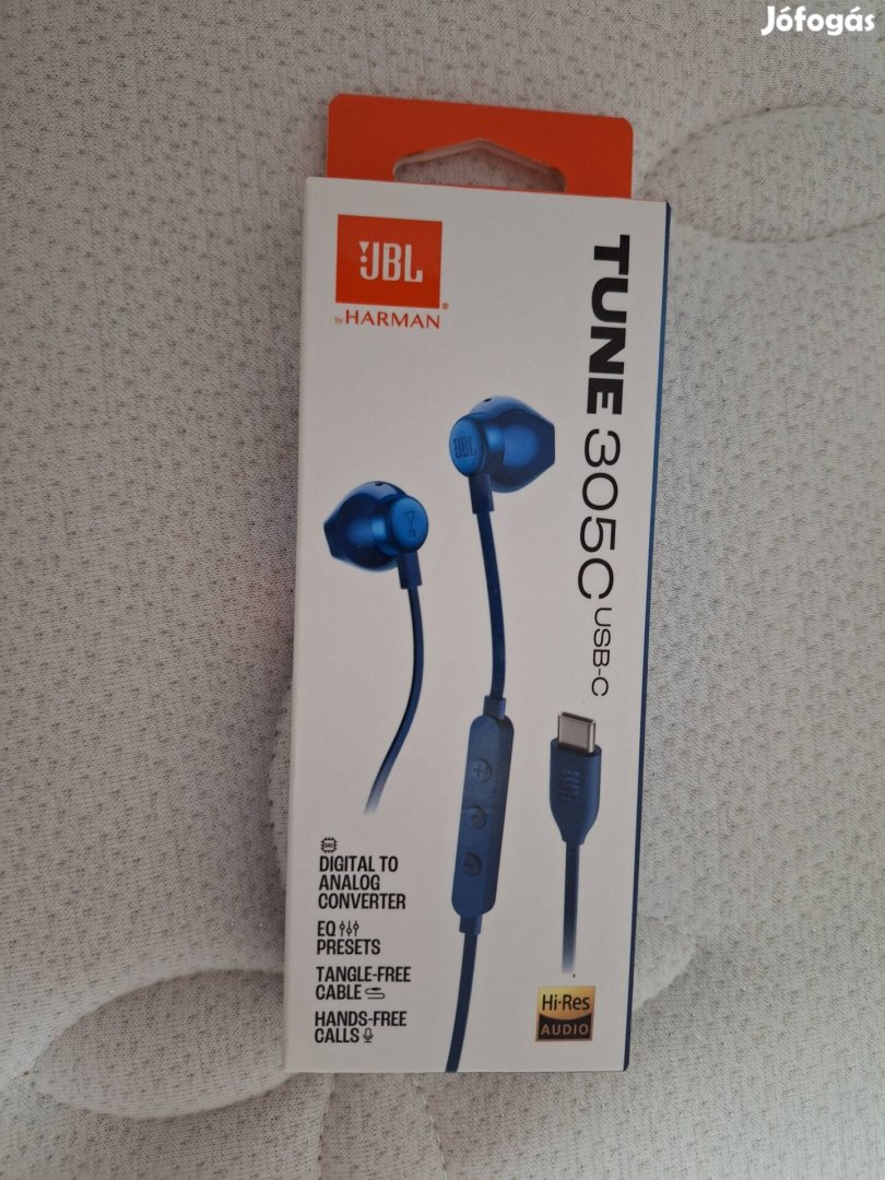 JBL Tune 305c usb-c vezetékes usb-s kék színű fülhallgató.