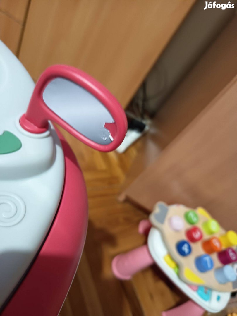 Kislányomnak vettük 26000 forintért kb 6- szor volt benne mert sírt benne és rá 3-4 hétre már ment utána meg azért nem ment bele. Szilikon kerék nem hangos és le lehet dönteni is. Egy hibája van hogy a visszapillantóról a matrica egy kicsit lejött