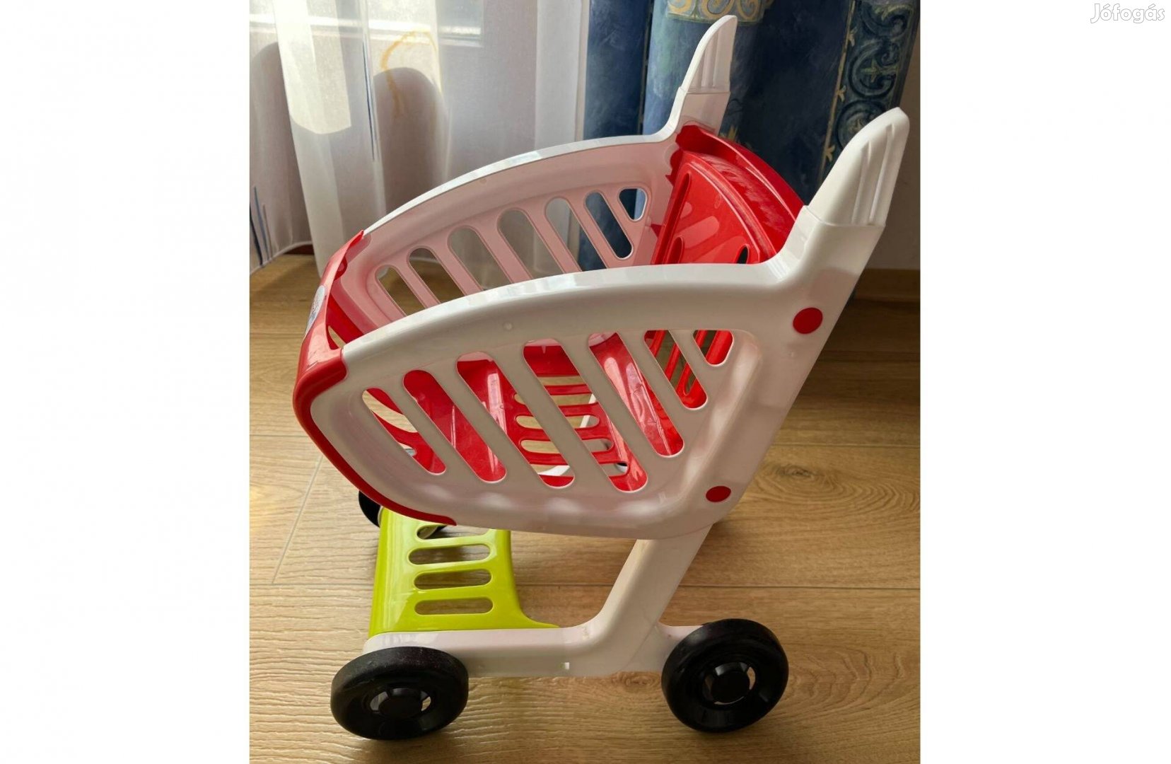 Eladó egy használt műanyag játék bevásárlókocsi.