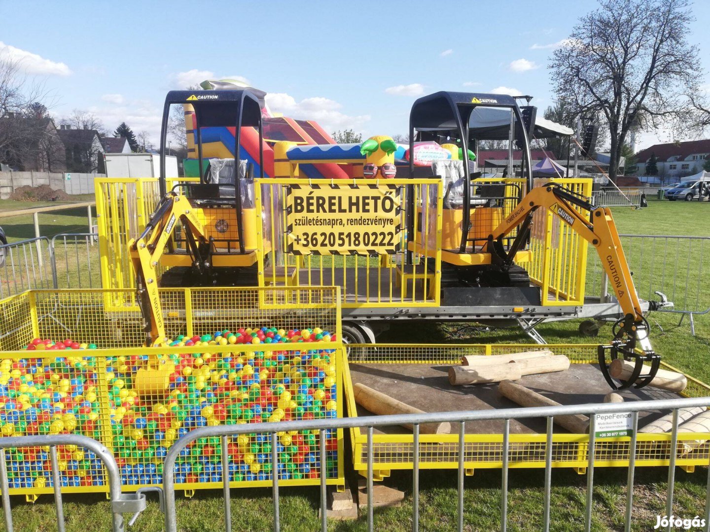 Játék markoló és játék rönkrakodó bérelhető születésnapra, rendezvényre! Élethű másolata az igazinak, TÜV tanúsítvány, 2 joystickos vezérlés.