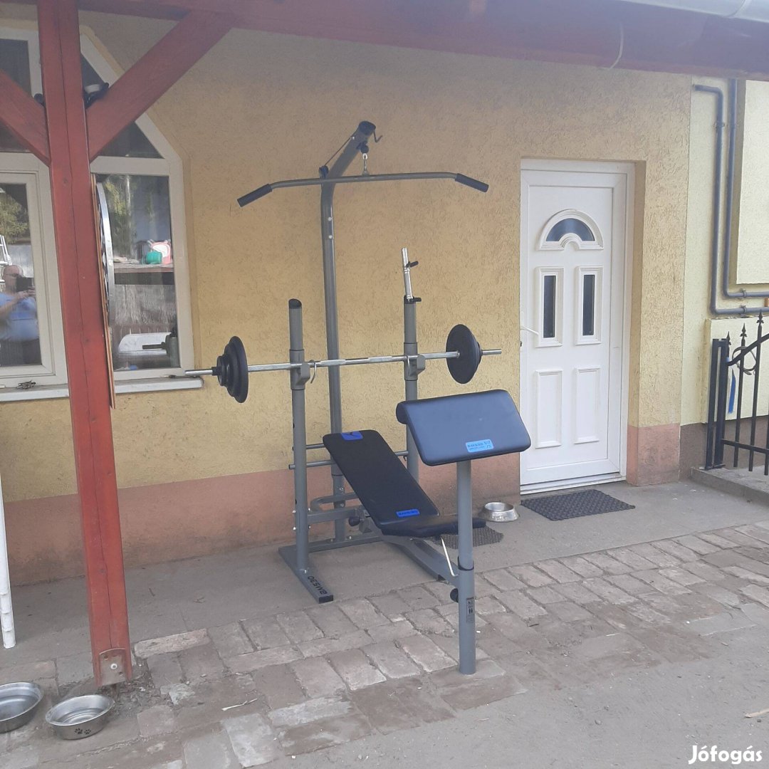 Jó állapotban lévő többfunkciós domyos fekpad kondigép súly rúd