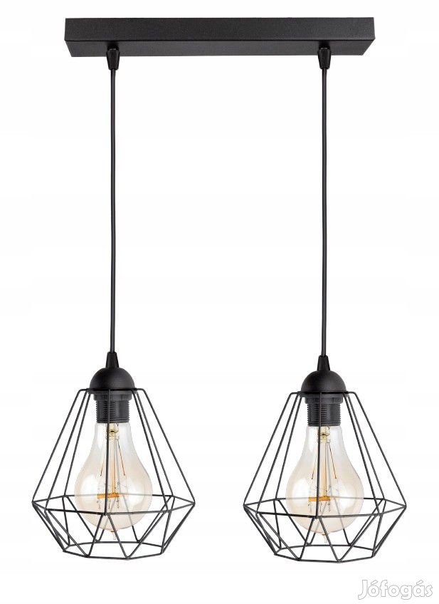 KÉSZLETKISÖPRÉS! Glimex Diamond drót búrás állítható függőlámpa feket