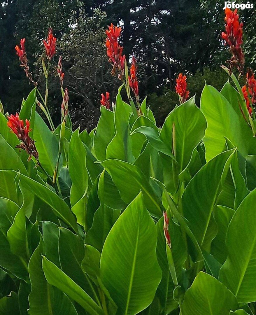 Piros virágú, zöld levelű kanna virág gumók 200 Ft/db áron eladók.