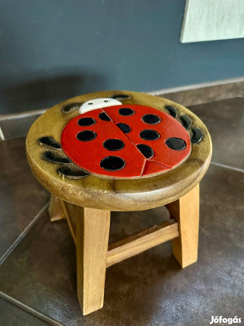 Katica mintás festett, faragott gyermek sámli tömör fából