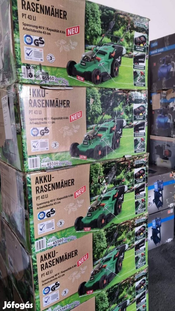 Garanciával, kedvező áron eladó Powertec Garden akkumulátoros fűnyíró 40V, 50L-es gyűjtőzsákkal, 43cm vágási szélességgel.